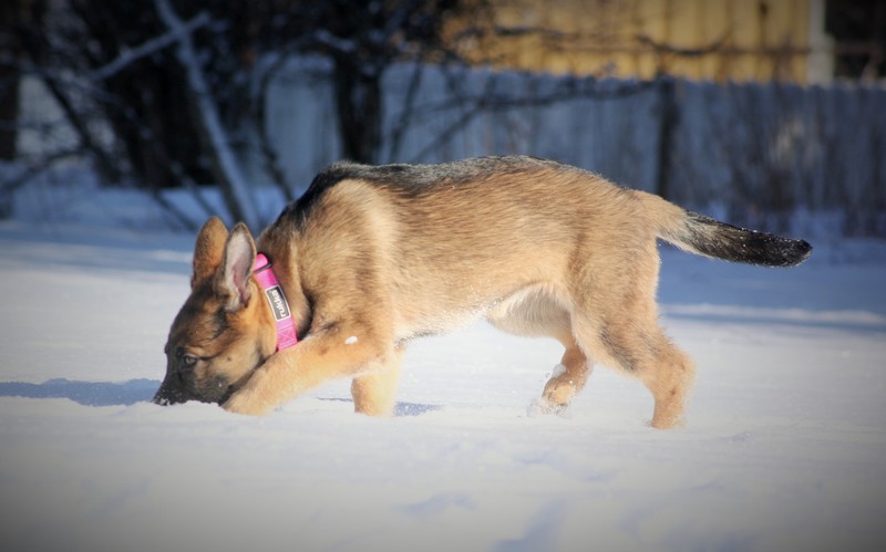 Meidän mukaamme lähti harmaa narttupentu sijoitussopimuksella. Viralliselta nimeltään talouden prinsessa on Calla, mutta meillä hienoisen nimiväännön jälkeen ristittiin tyttö nimellä Lux. Pentuna Lux on tasapainoinen ja helppo. Siltä kyllä löytyy mielipiteet, sekä temperamenttiä. Imee nopeasti vaikutteita vanhemmasta koirasta ja oppii itsekin hirmu nopeasti.